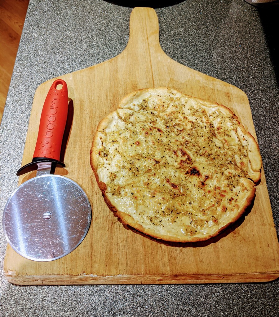 Once you have your dough rolled out. You need to pre-cook it and get it browned before adding the garlic butter.